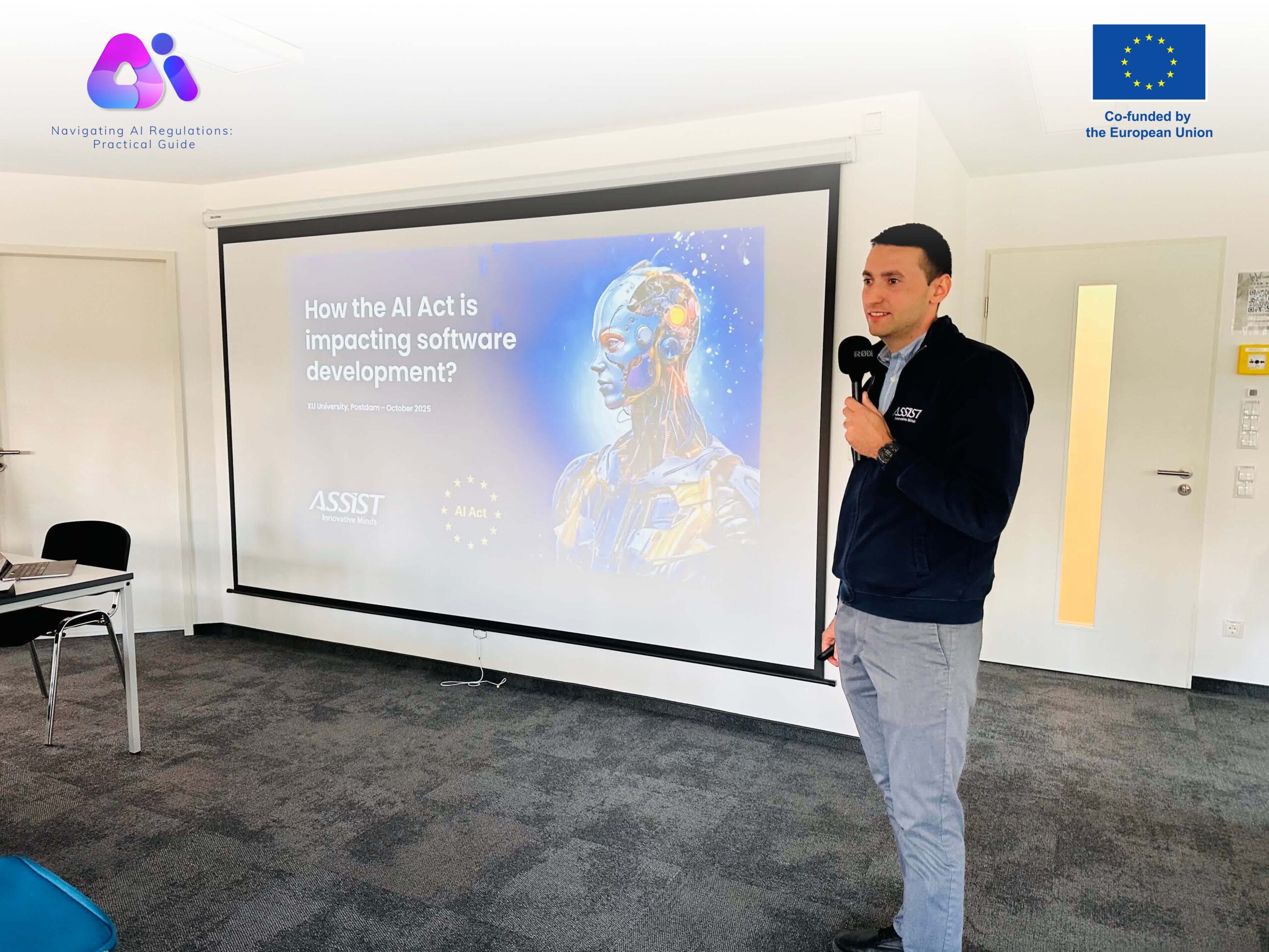 Adding a practical industry perspective, Mr. Alexandru Nistor, Vice President of Process Improvements at ASSIST Software, shared valuable insights on how companies can navigate AI compliance while fostering innovation and financing within creative sectors. With more than a decade of experience in AI and software development, his presentation bridged the gap between technical expertise and real-world application.